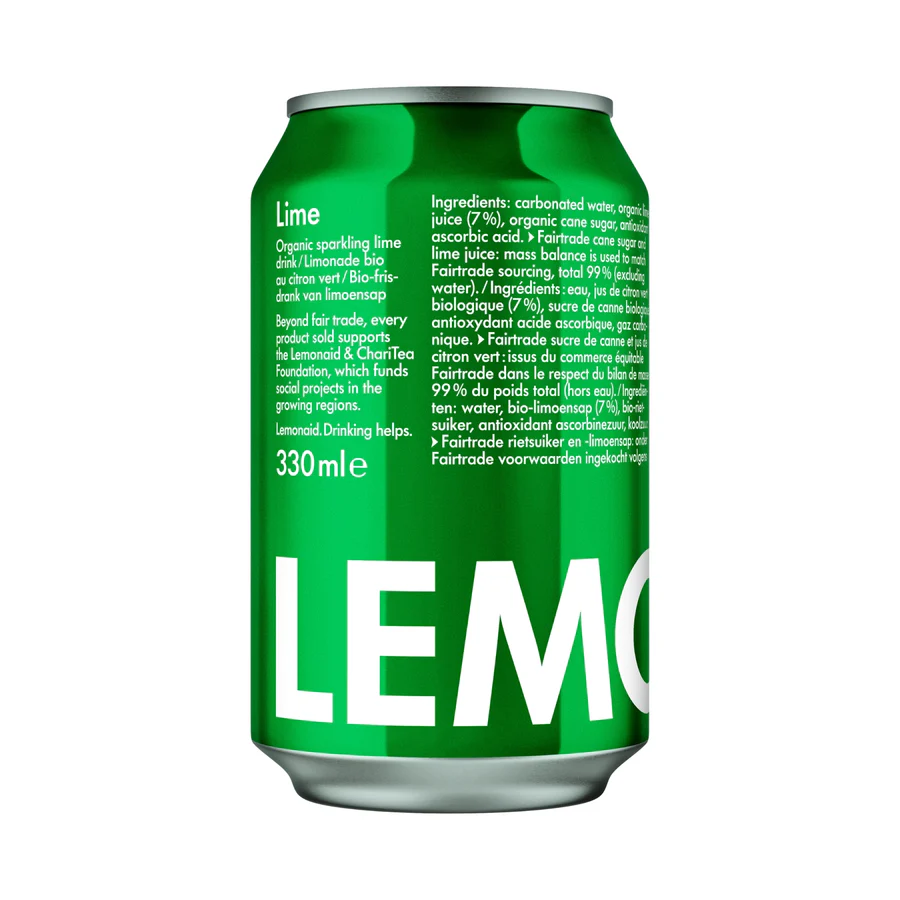 Carbonated water, organic lime juice (7 %), organic cane sugar, antioxidant ascorbic acid.